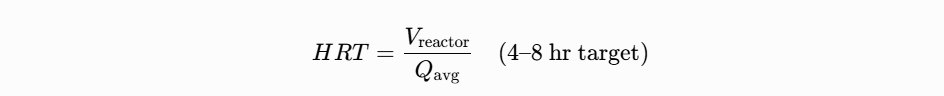 | Design Flow | $Q$ | $\text{m}^3/\text{day}$ | — | Scales everything |